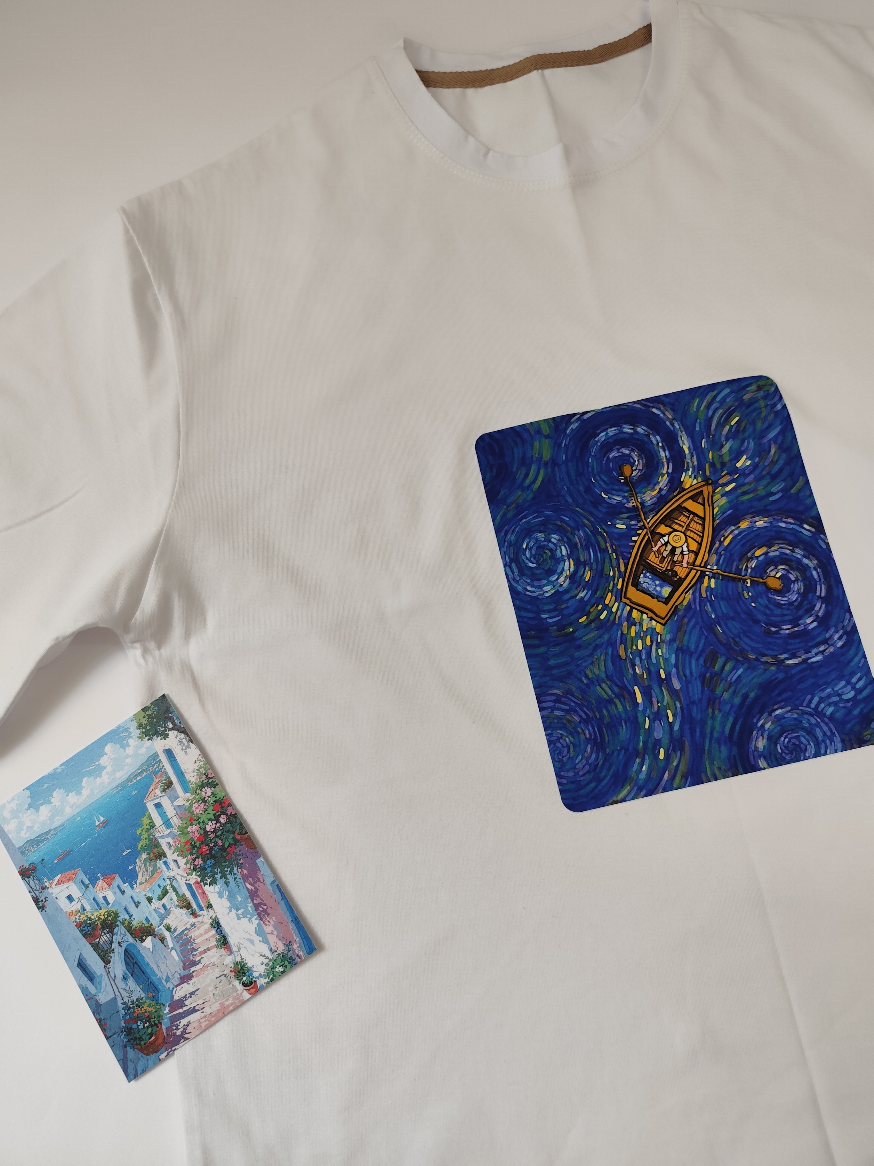 تیشرت لانگ طرح ونگوگ قایق در آب