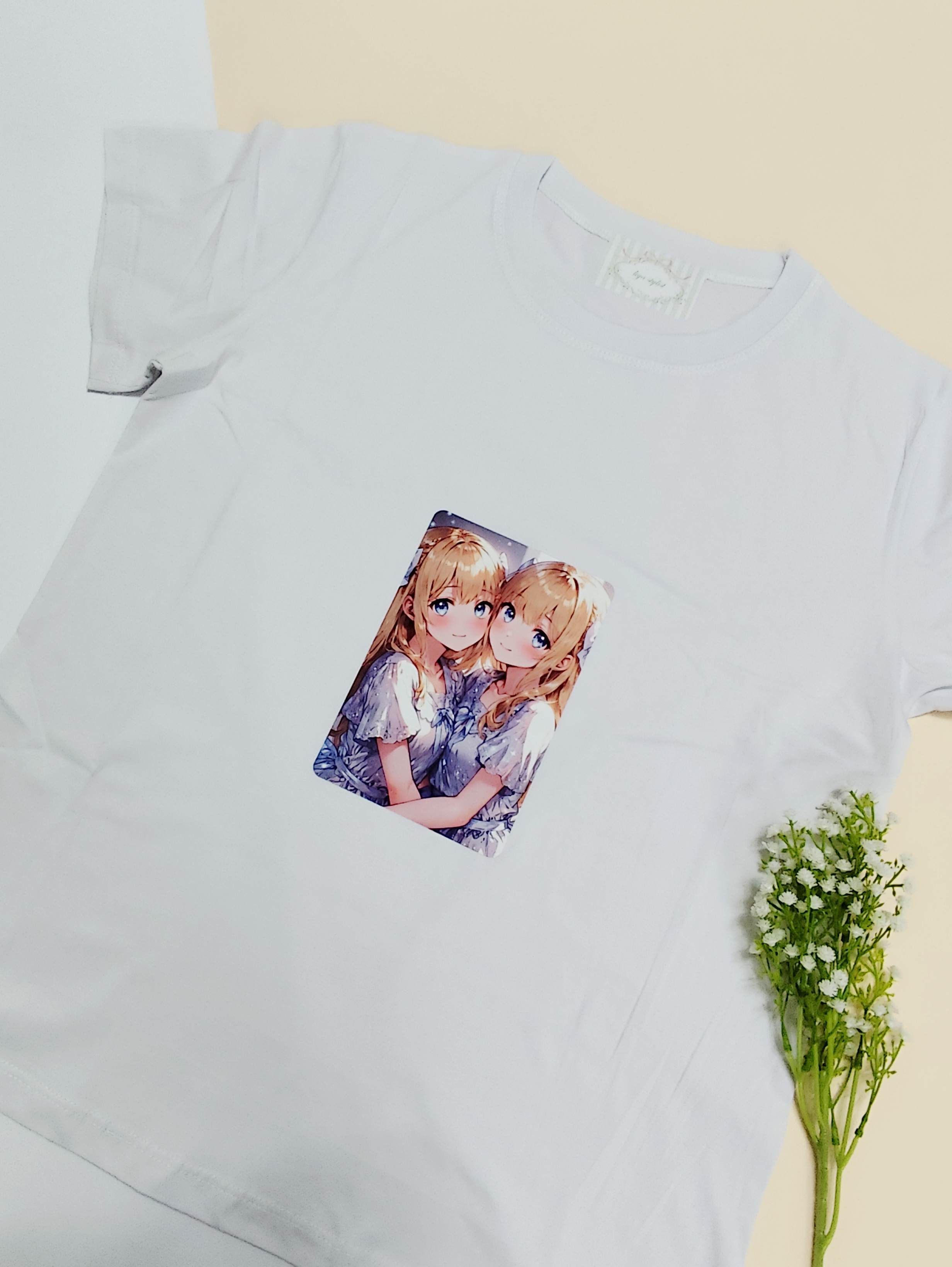 تیشرت زنانه نخ پنبه فری سایز طرح دوقلو دختر