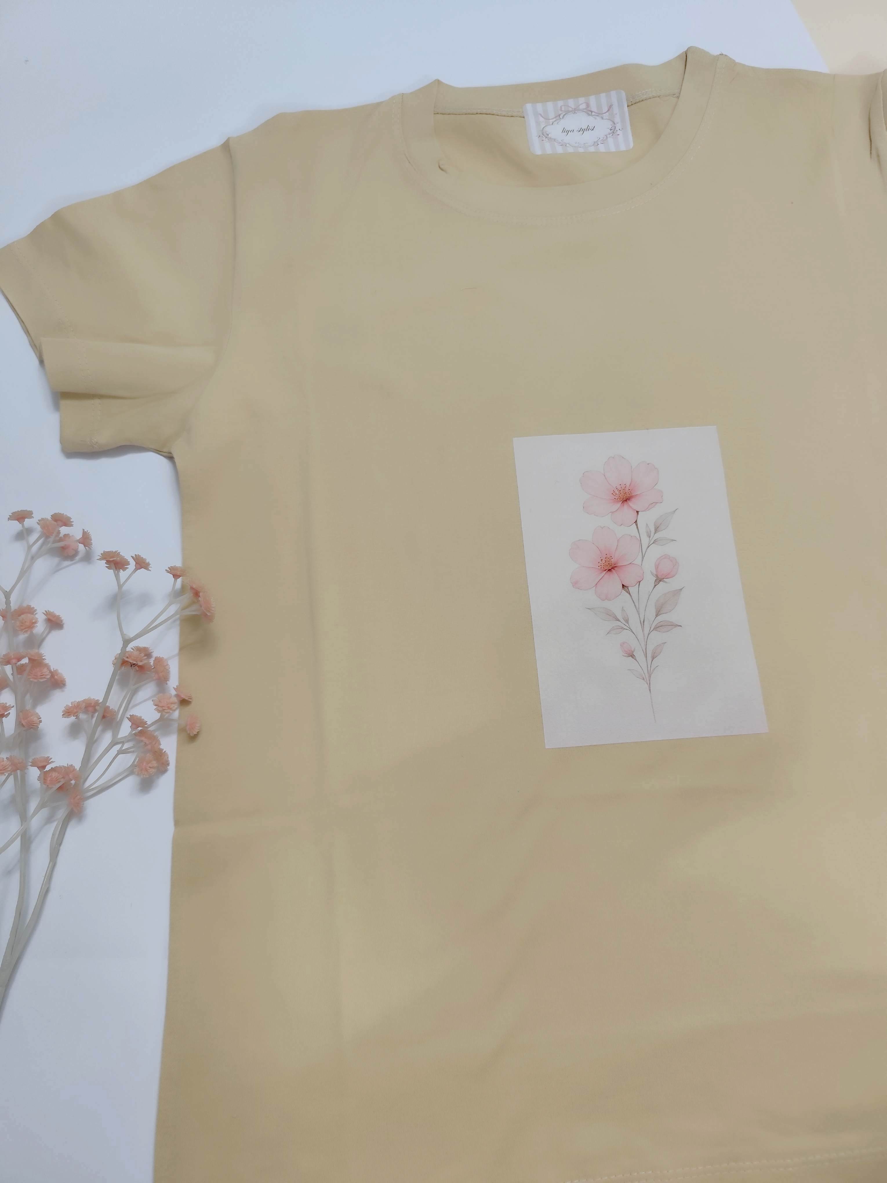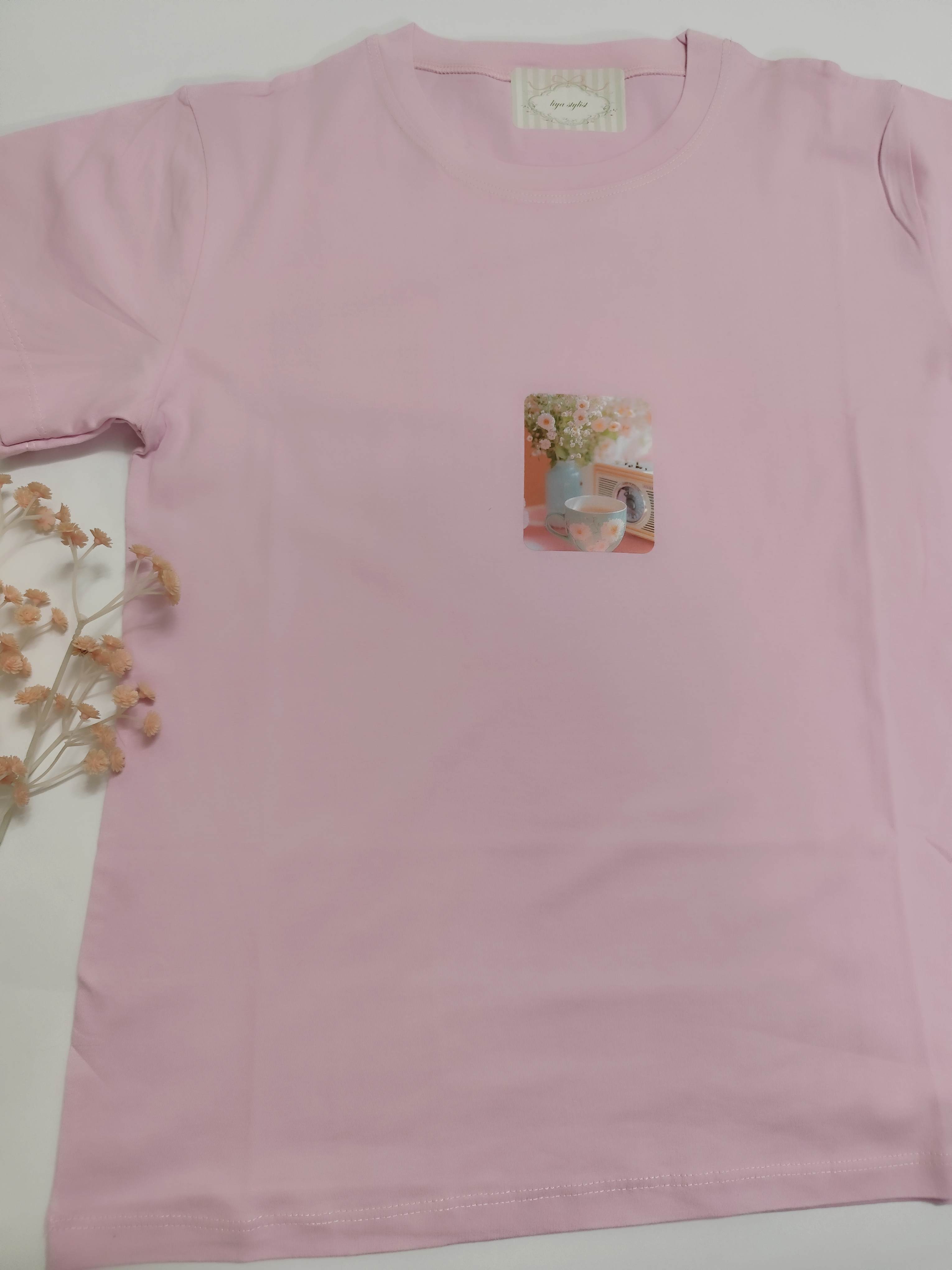 ناموجودتیشرت طرح کلبه صورتی با دشت شکوفه صورتی