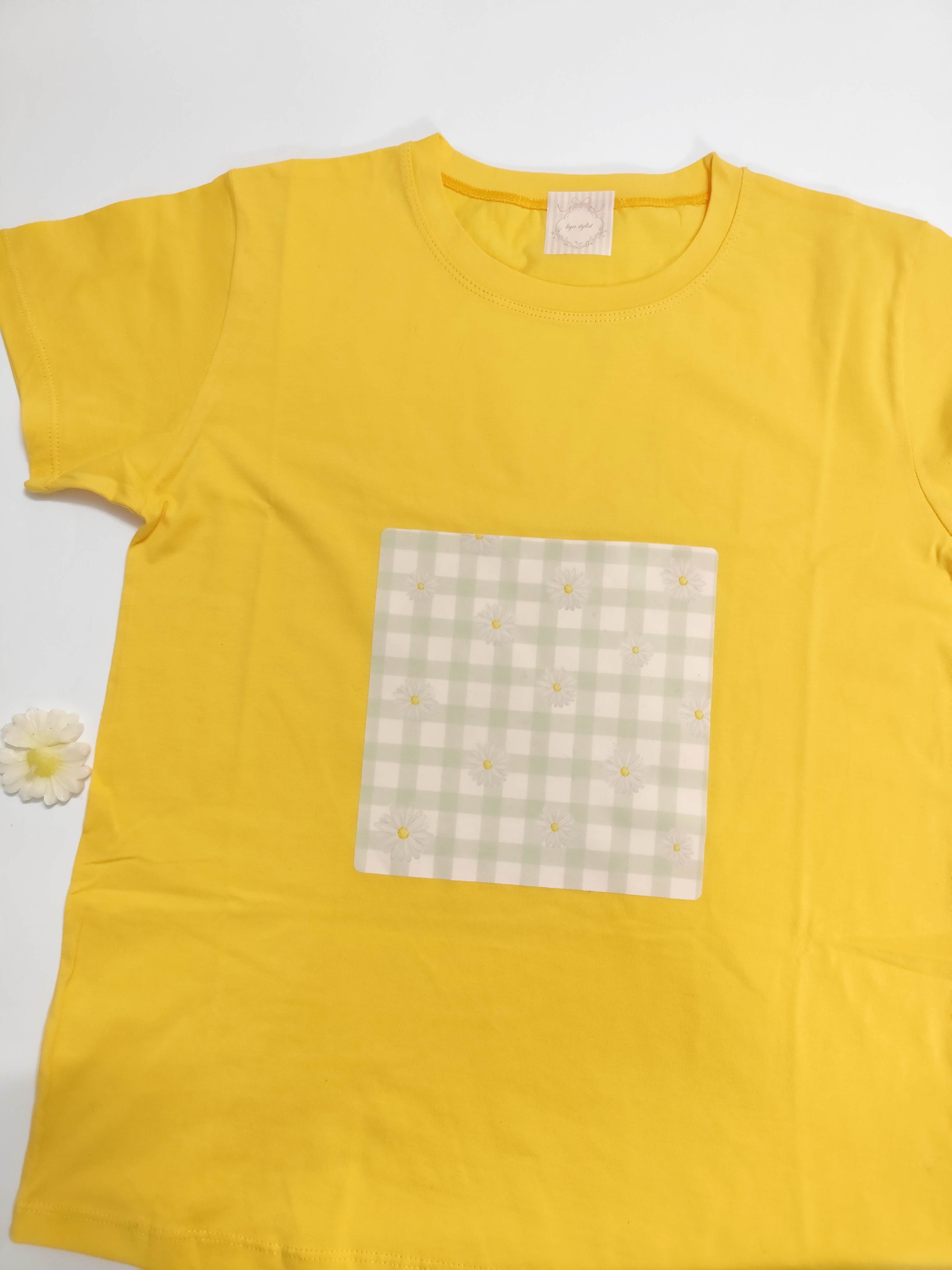 تیشرت زنانه نخ پنبه فری سایز طرح بابونه چهارخونه