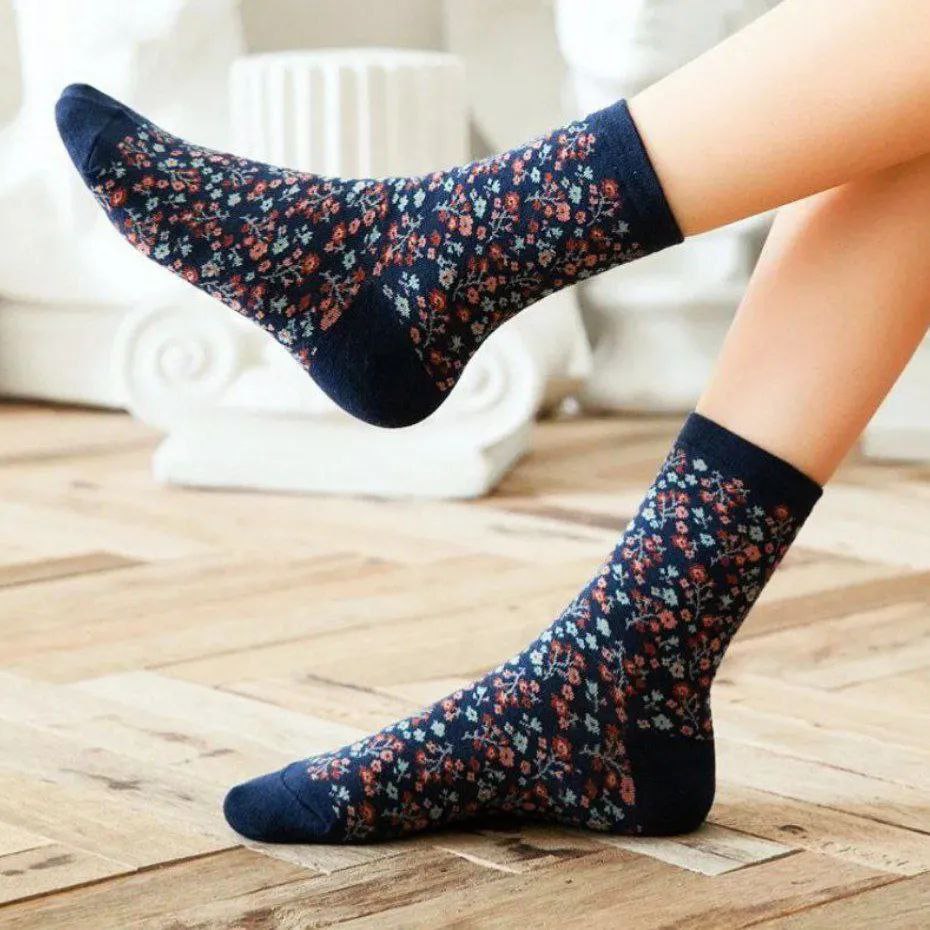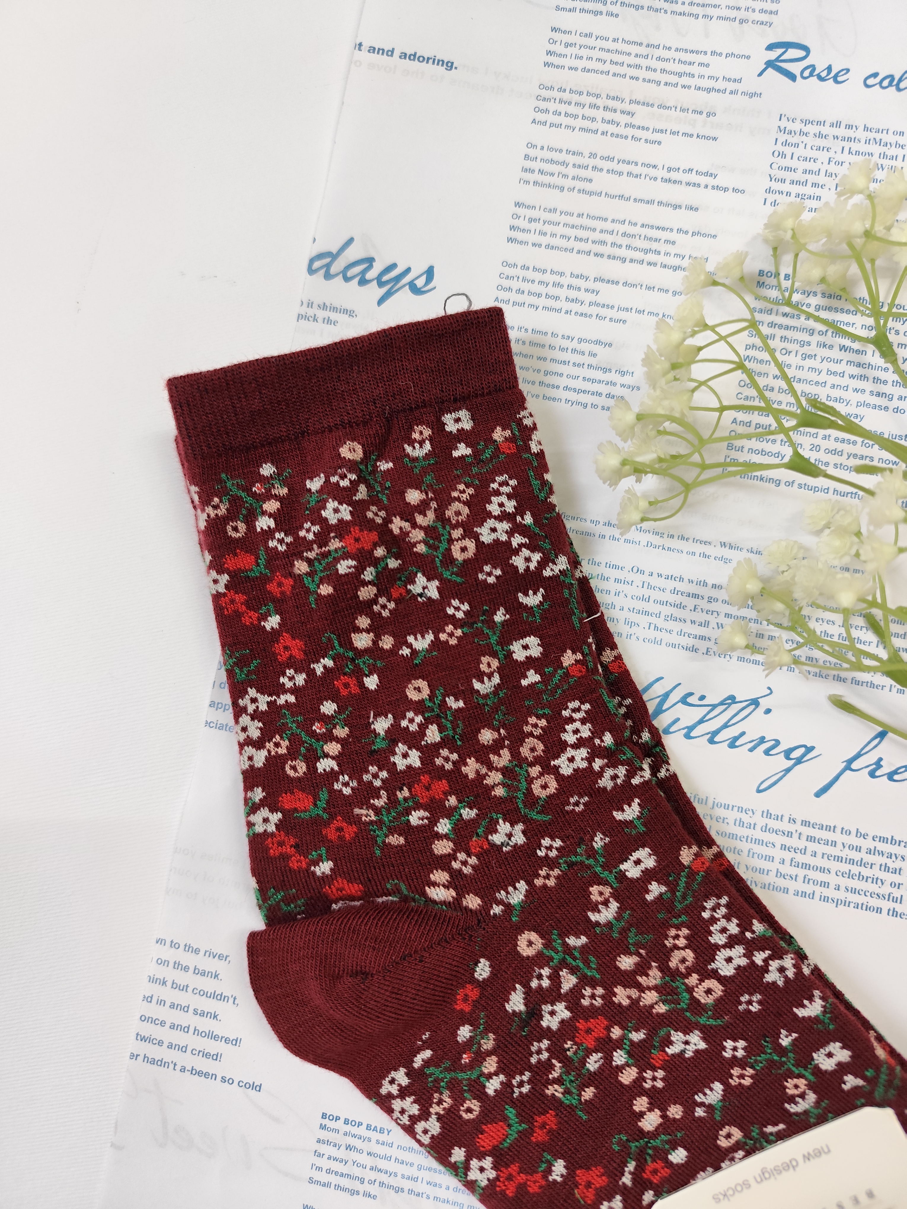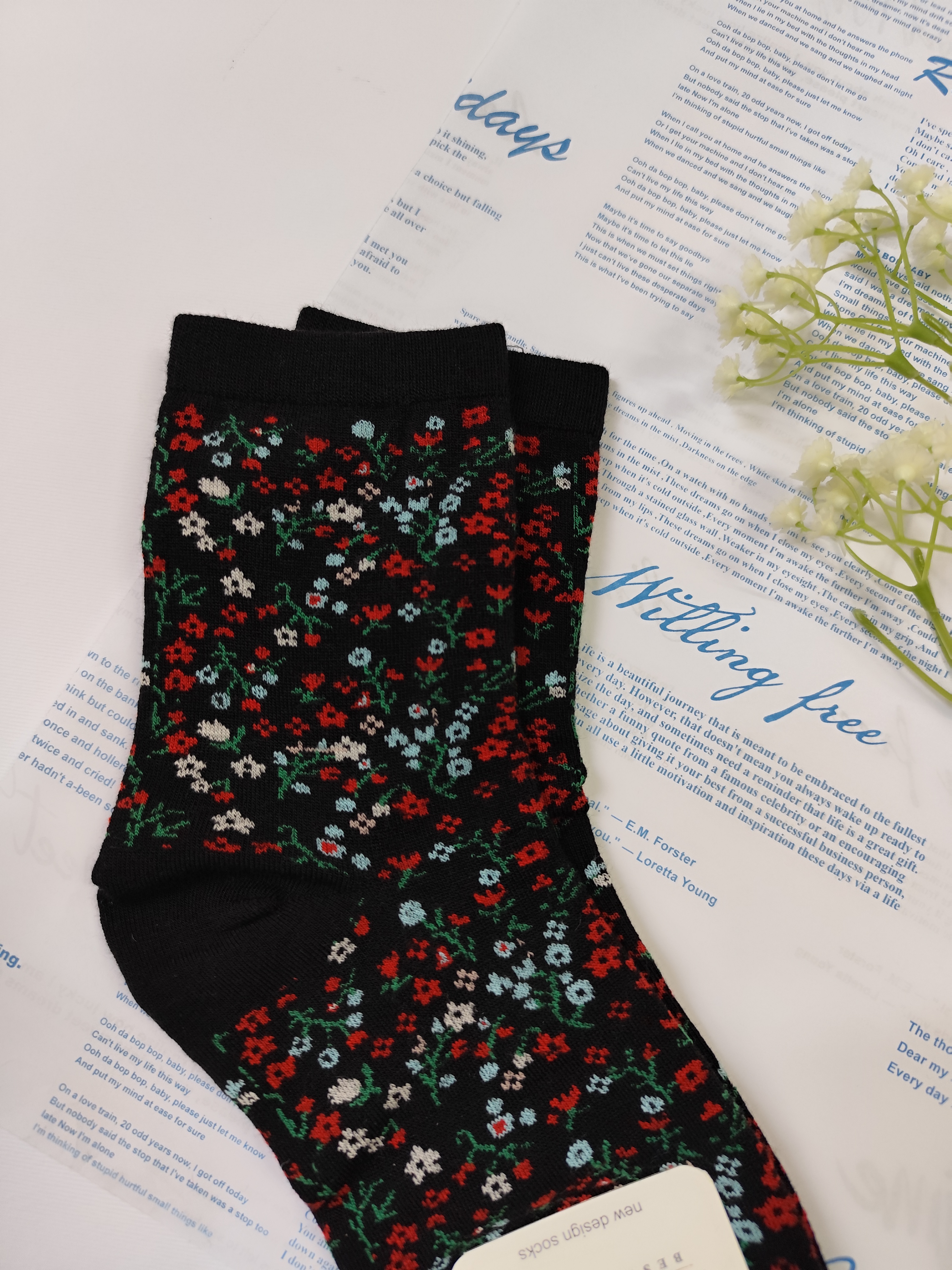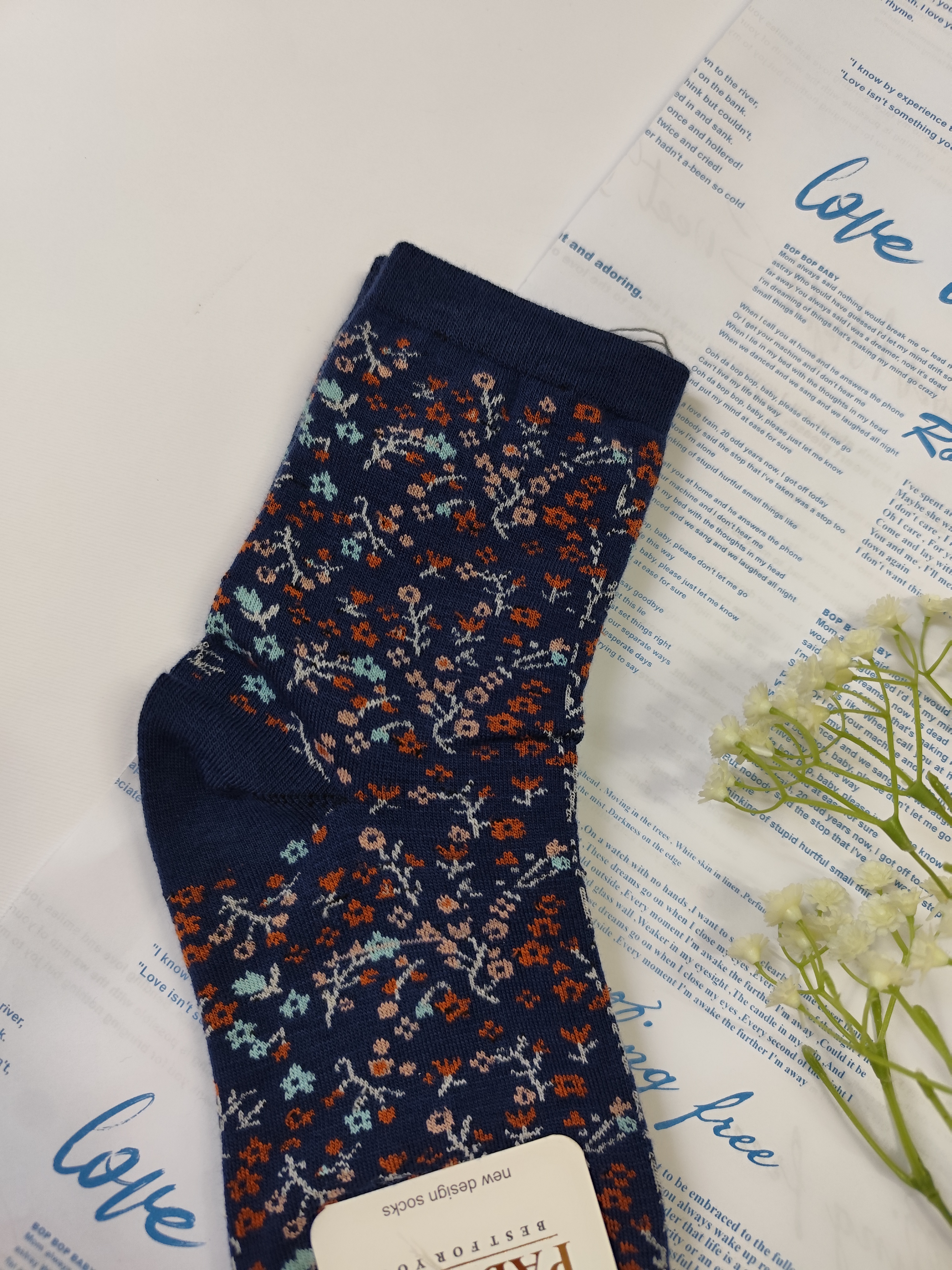 جوراب زنانه ساق بلندگل گلی رنگ: مشکی.کرم.آبی تیره.زرشکی جنس :نخ پنبه سایز:ساق بلند فری سایز از ۳۶تا۴۱