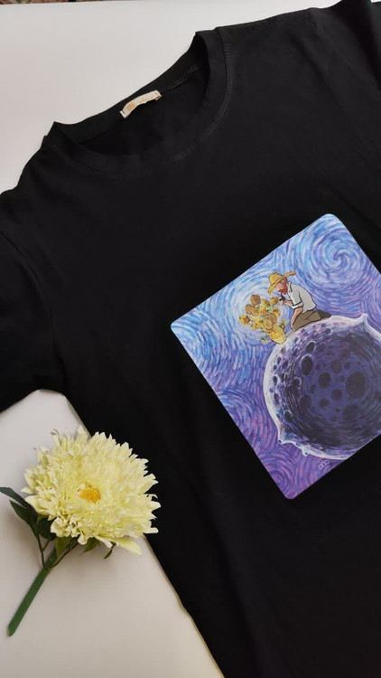 تیشرت طرح ونگوگ روی ماه و گلدان آفتاگردان و مرد🌗