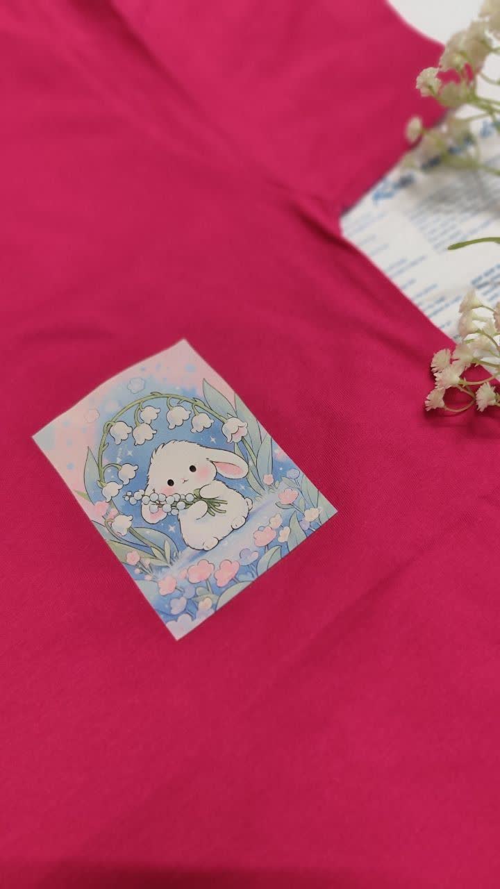تیشرت طرح خرگوش گمشده در گلها و گل موگه