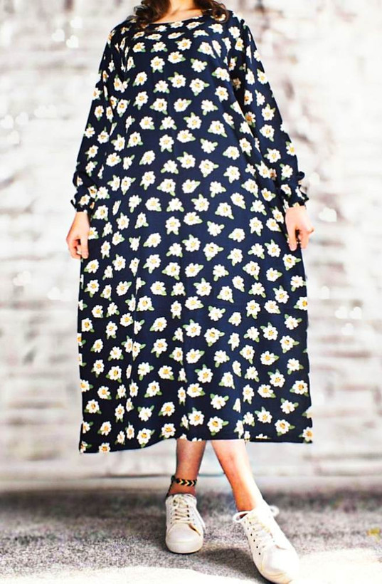 پیراهن ساحلی زنانه نخی آستین بلند یقه گرد