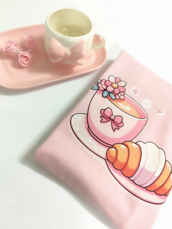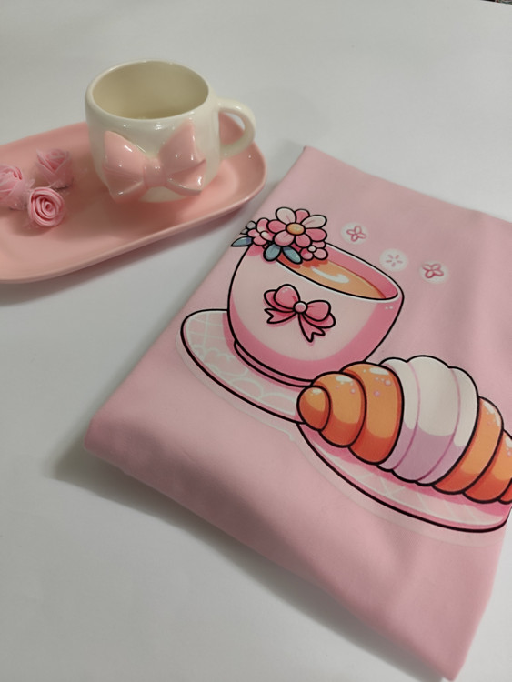 تیشرت طرح کروسان با فنجان نسکافه