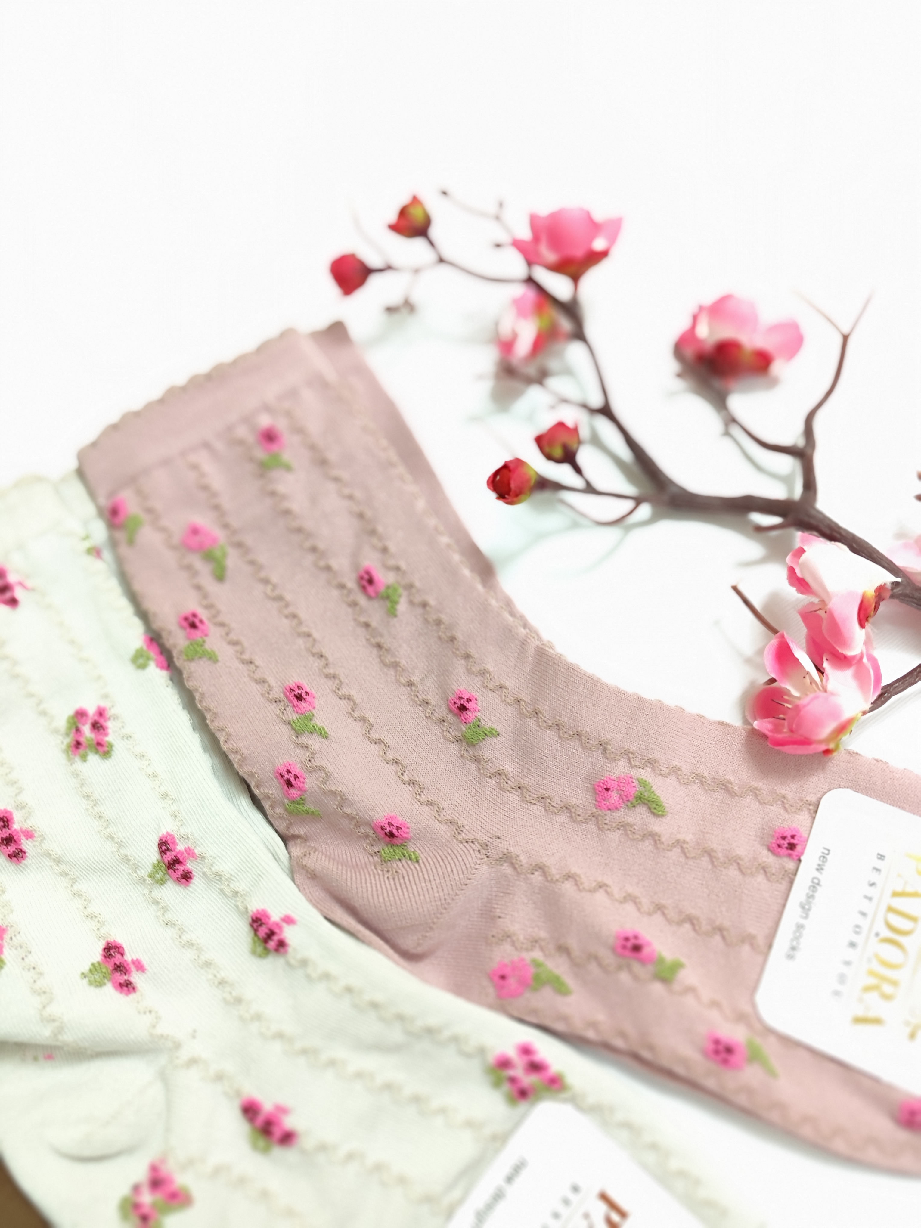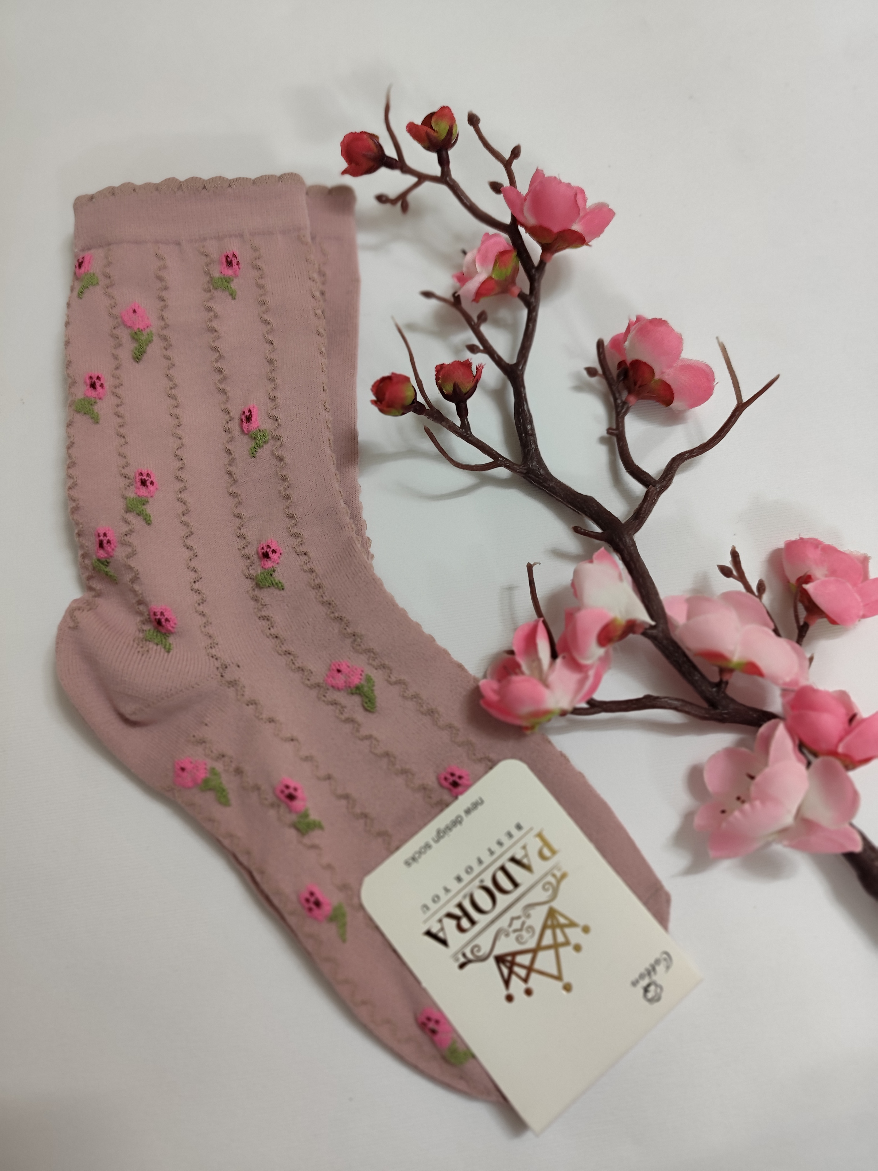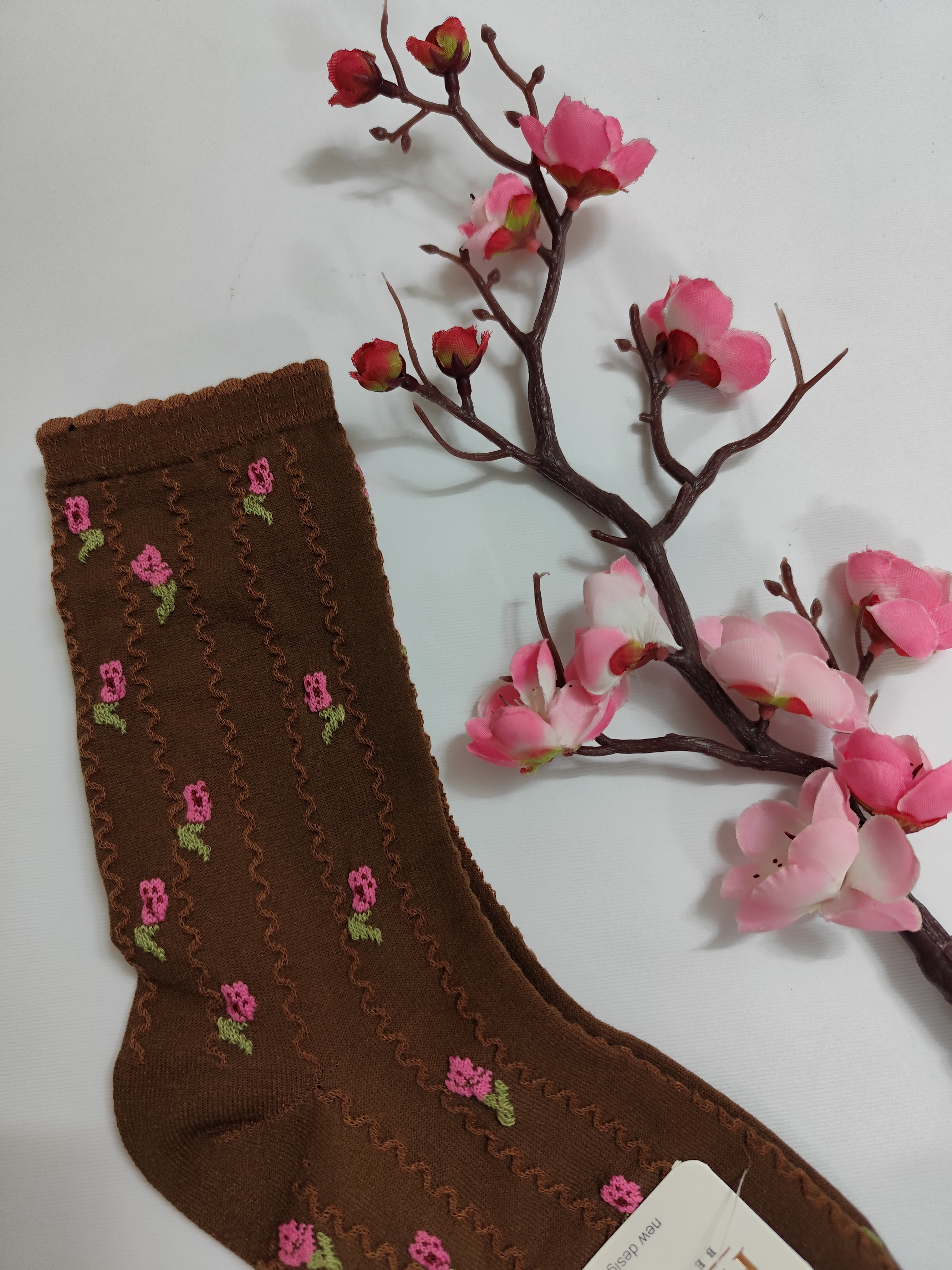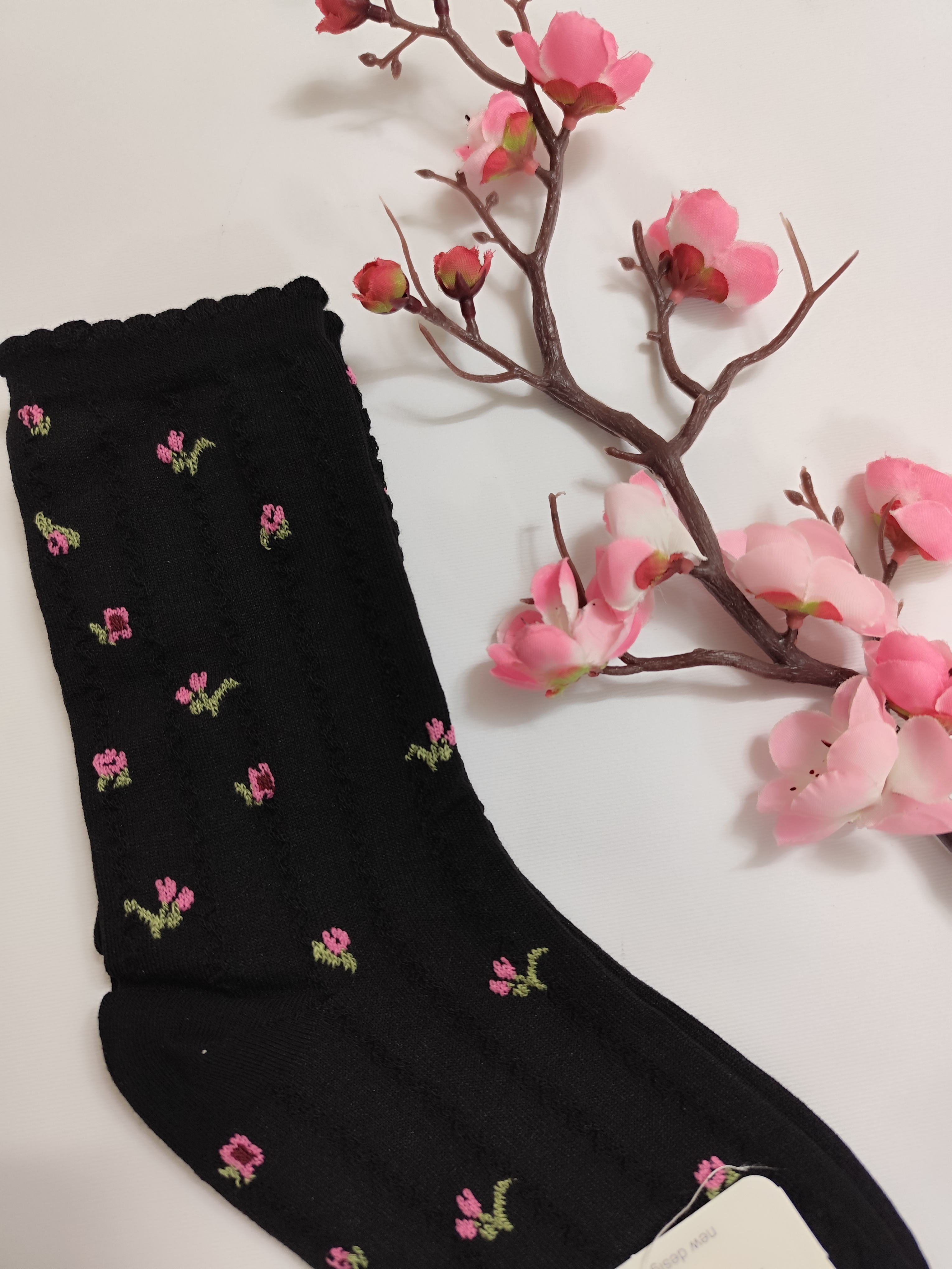 جوراب ساق بلند گل گلی برجسته